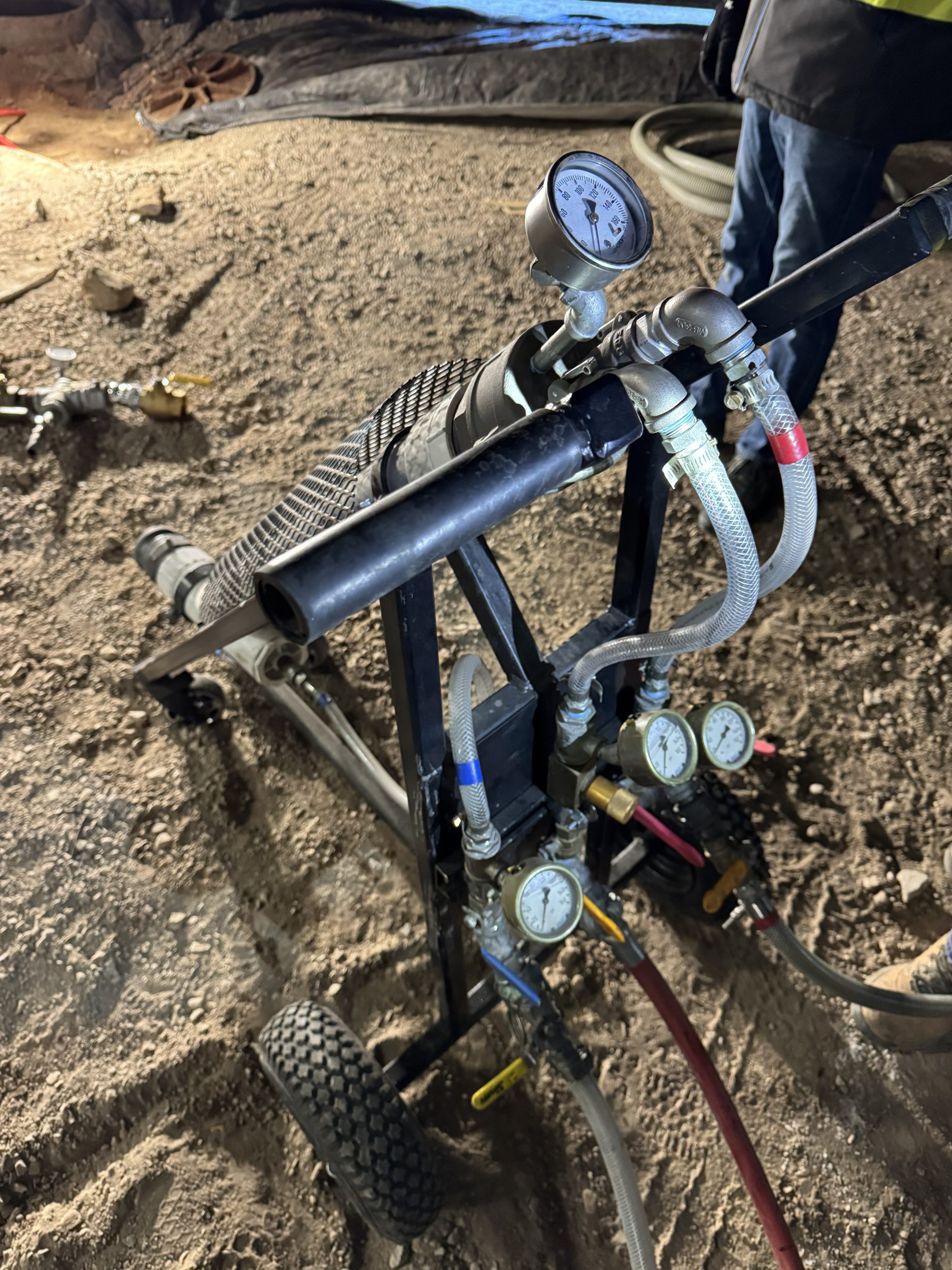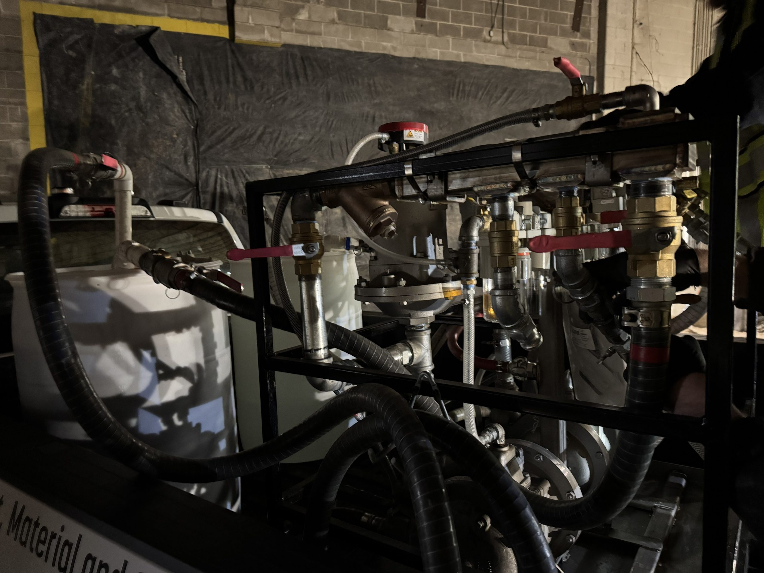 • Pumping approximately 900 lbs of FillFoam (pre-expansion) to fill roughly 60 feet of the 100-foot pipe run, fully occupying the internal void and providing long-term structural support