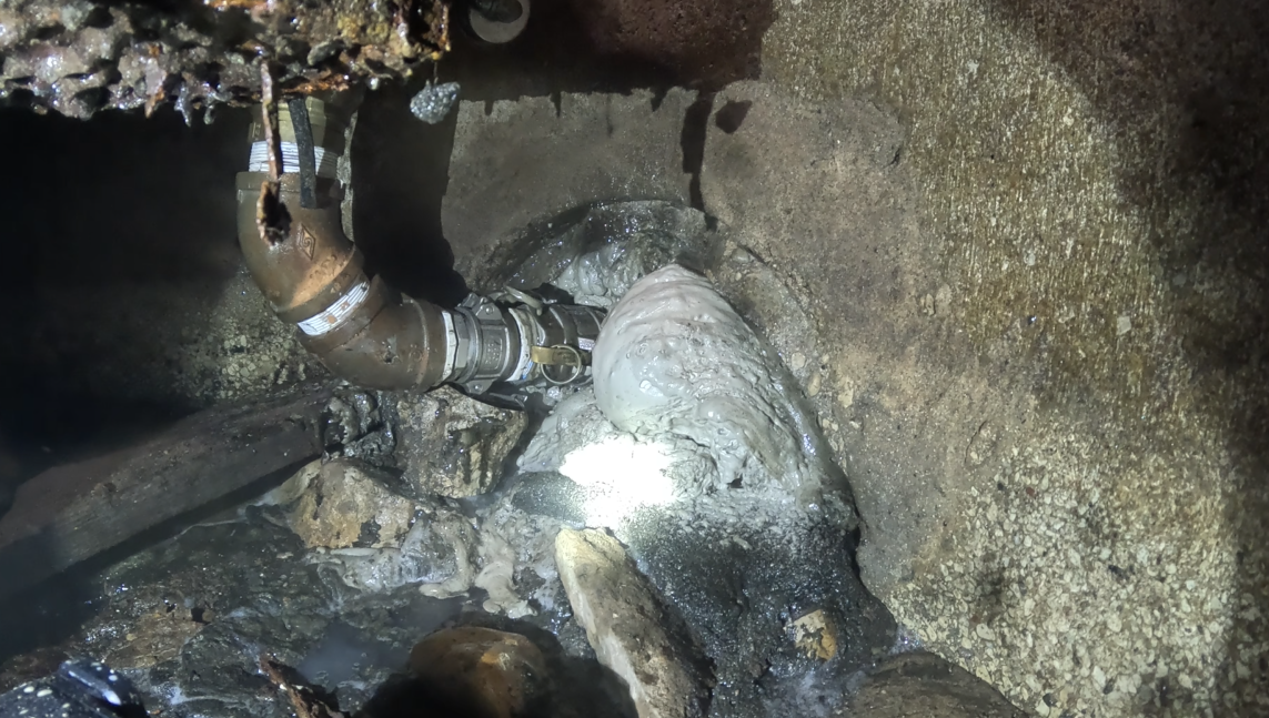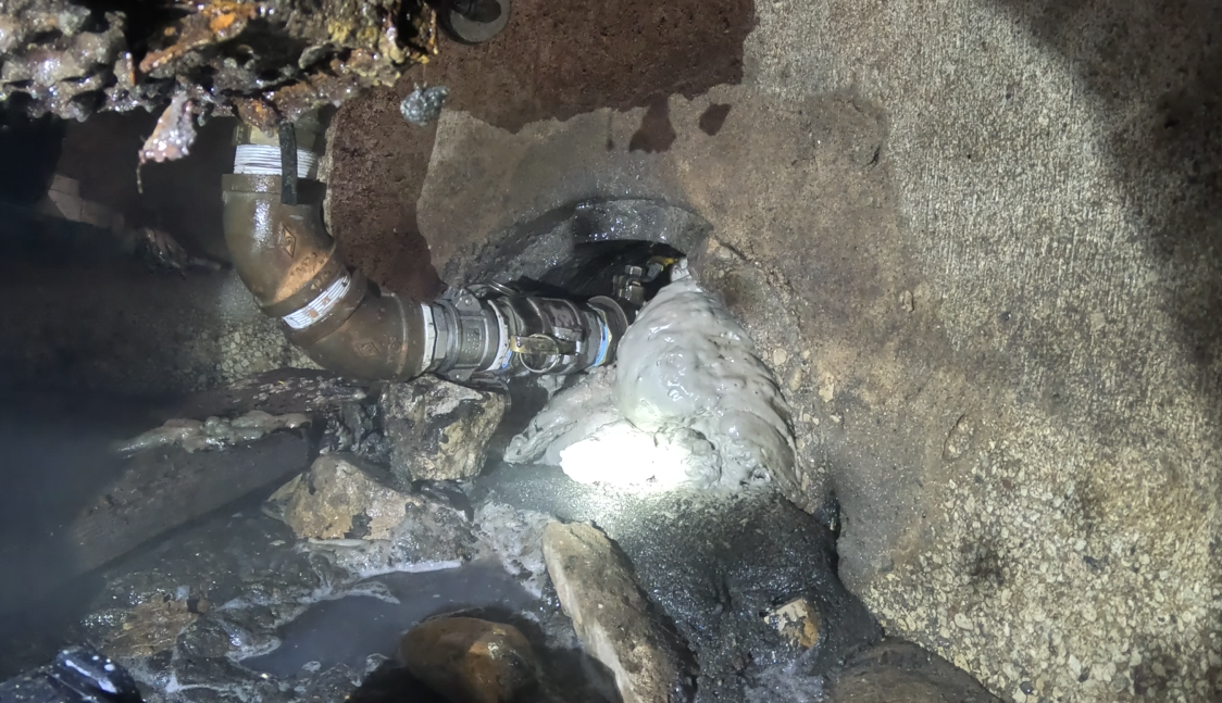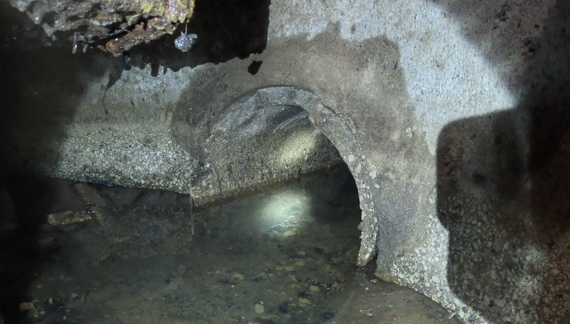 While the pipe was still conveying water at the time of discovery, the drainage system was scheduled to be rerouted and replaced as part of the new construction. This made the existing pipe obsolete. The owner’s primary concern was not long-term drainage, but the risk of future pipe collapse, sinkhole formation, or unwanted animal intrusion beneath or near the renovated structure.